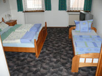 Ein Doppelzimmer mit Bad (Dusche / WC) Ein Drei-Bett-Zimmer mit Bad (Dusche / WC)